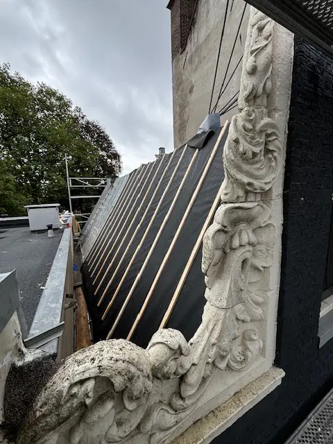 Dit project betreft de restauratie en renovatie van een historisch pand, met specifieke aandacht voor de gevel, het dak en de isolatie. De werkzaamheden omvatten het herstel van de metselwerken, het vernieuwen van de dakconstructie met moderne isolatiematerialen en het behouden van karakteristieke ornamenten om het authentieke uiterlijk van het gebouw te waarborgen.